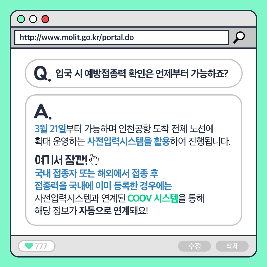 Q. 입국 시 예방접종력 확인은 언제부터 가능하죠?