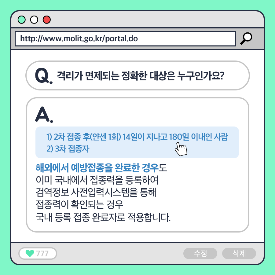 Q. 격리가 면제되는 정확한 대상은 누구인가요?