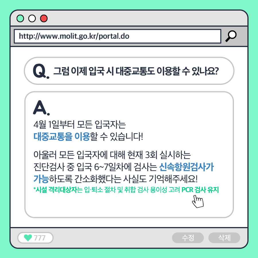 A. 4월 1일부터 모든 입국자는 대중교통을 이용할 수 있습니다!
