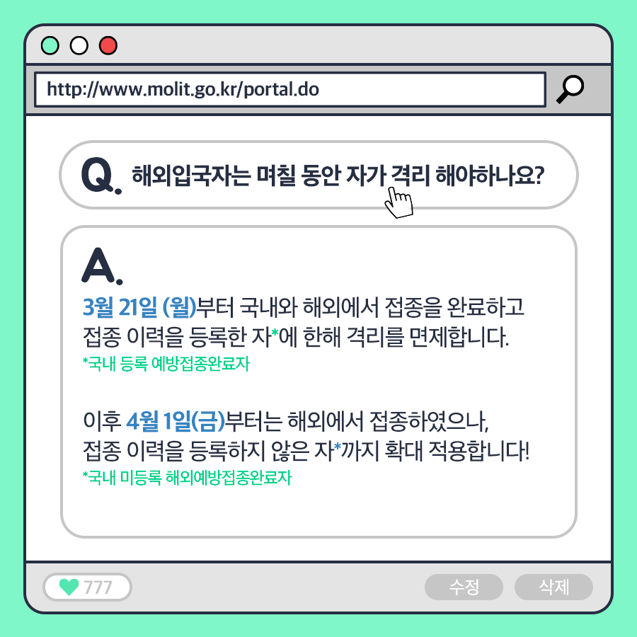 [출처] 입국 후 며칠 동안 자가격리 해야하나요?|작성자 국토교통부