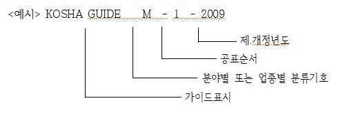 2-1. 기술지침에는 GUIDE 표시, 분야별 또는 업종별 분류기호, 공표순서, 제․개정 년도의 순으로 번호를 부여합니다.